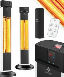 KESSER Turm-Heizstrahler per Fernbedienung steuerbar für Indoor und Outdoor mit 3 Heizstufen und 1-24h Timer , Kippschutz, Carbon-Heizelement sowie Regencover