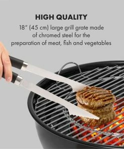 Klarstein Beef Baron Kugelgrill Holzkohlegrill | Durchmesser: 18″ (45 cm) | inkl. Belüftungssystem | integriertes Thermometer | Grillrost: verchromter Stahl | emaillierter Kohletopf | Lüftungsschieber | 2 Bodenrollen | schwarz