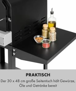 - Praktisch: der 30 x 48 cm große Seitentisch hält Gewürze, Öle und Getränke bereit