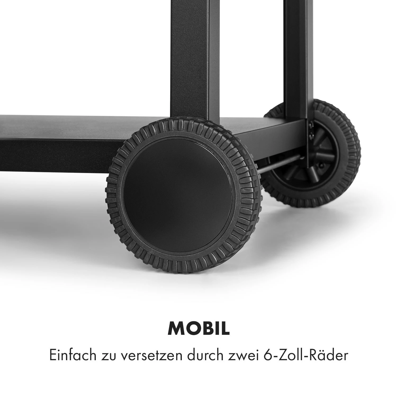 Klarstein Pizzaiolo Pro Pizza-Gasgrill | Grillofen | Outdoor: Pizza-Gasgrill | Seitentisch | 38 x 36 cm Pizzastein aus Schamotte | 2-teiliger 46 x 42 cm Edelstahl-Grillrost | doppelwandiges Stahlblech | Thermostat | Fettauffangschale | mobil | schwarz