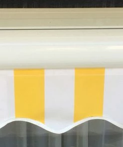 Bei dieser Markise fällt die Farbe creme je nach Material unterschiedlich aus.
