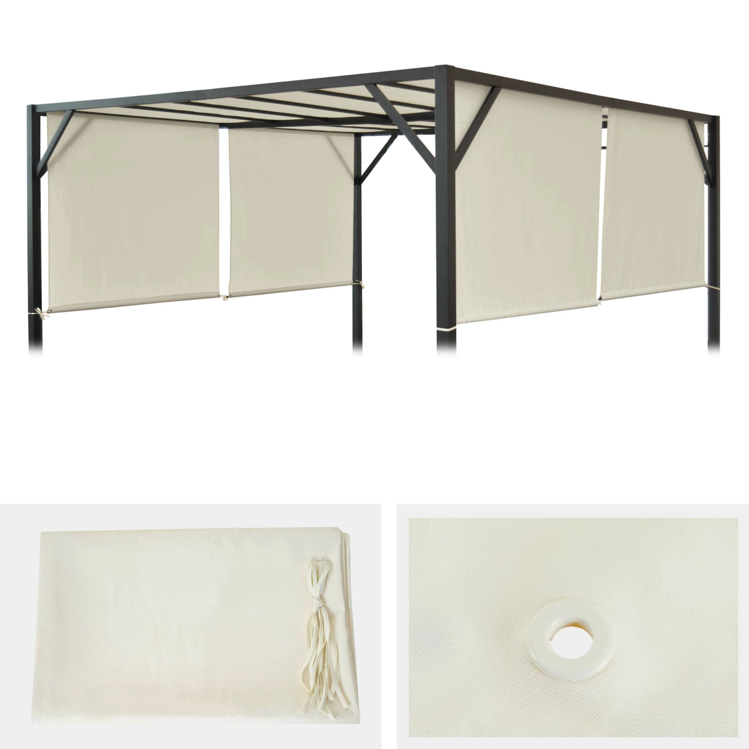 – Dieser Pergola-Bezug bietet Schutz vor Sonne und leichtem Regen. Um die Bildung von Wassersäcken bei Regen zu vermeiden sind Wasserablaufösen im Dach integriert. Genießen Sie den Sommer unabhängig im Freien mit diesem Ersatzdach in Ihrer Lieblingsfarbe.