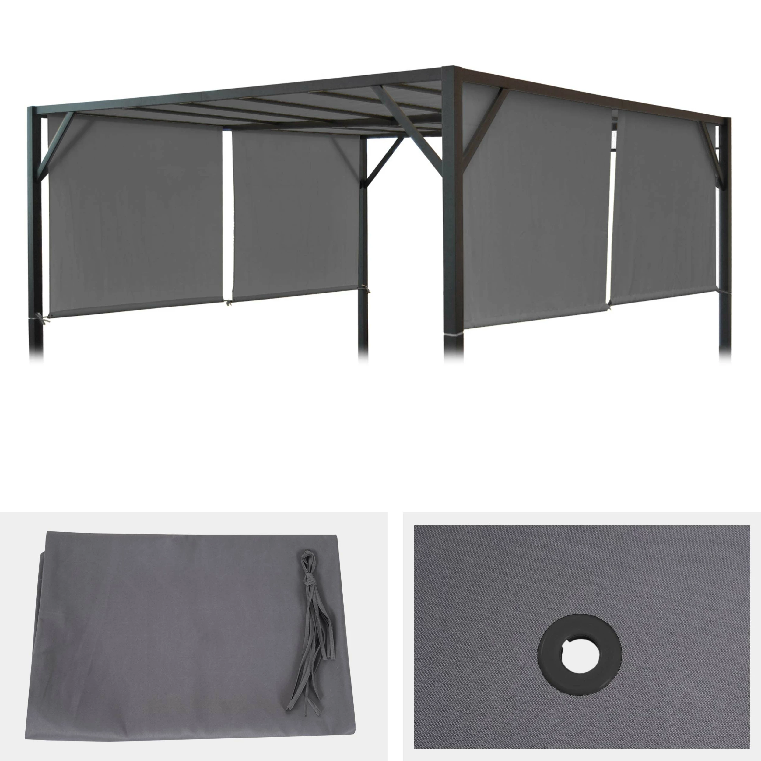 Der Bezug aus hochwertigem Polyester schützt Sie nicht nur zuverlässig vor UV-Strahlung, sondern ist außerdem regenbeständig, sodass auch ein kurzer Schauer nicht zum Problem wird. Dank der integrierten Ablaufösen kann das Regenwasser sich nicht auf dem Dach ansammeln und zu unerwünschten Sturzfluten führen. Somit ist die Pergola noch besser auf Regenschauer vorbereitet.