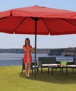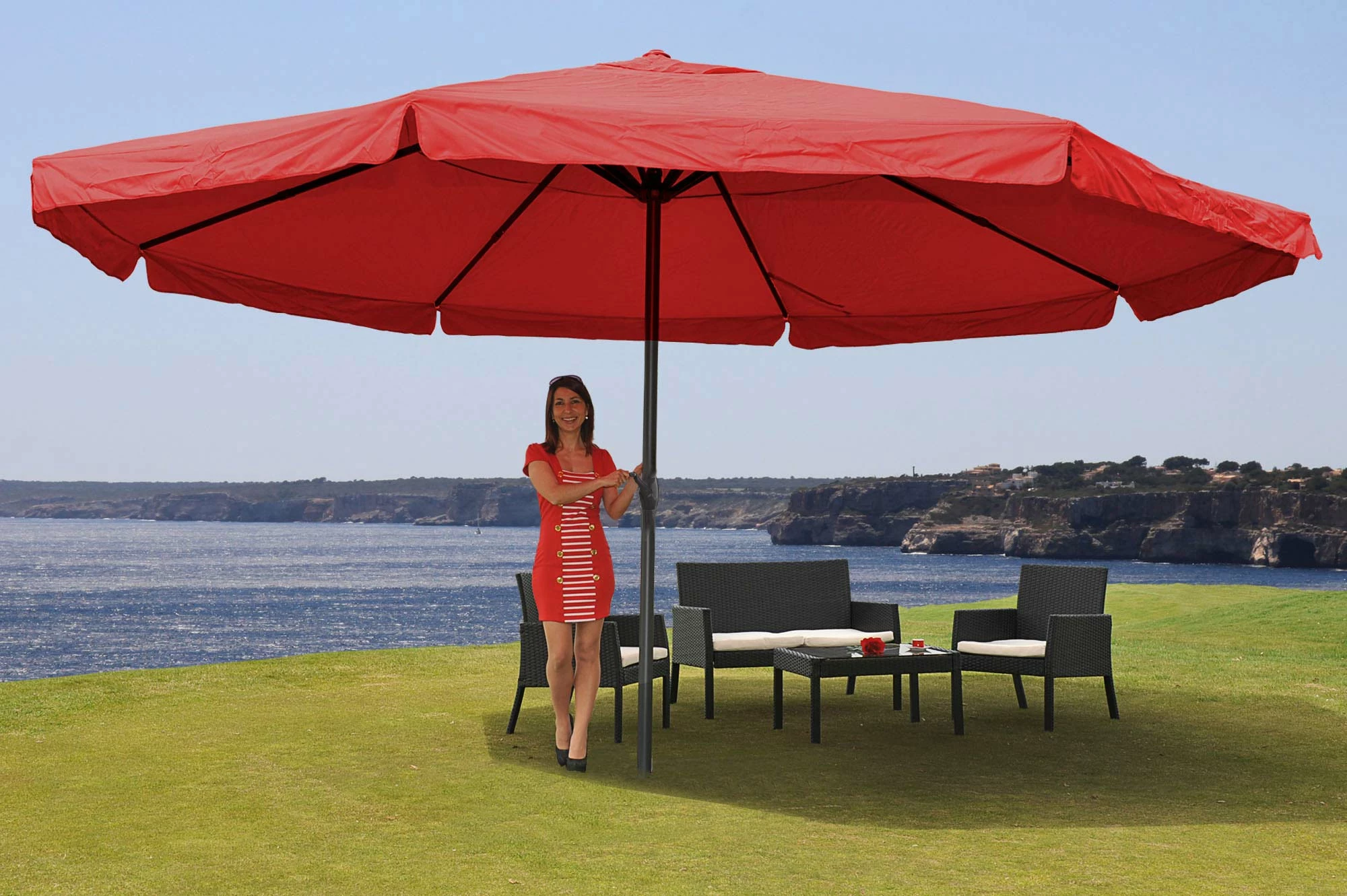 Der Bezug aus hochwertigem Polyester schützt Sie nicht nur zuverlässig vor UV-Strahlung, sondern ist außerdem kurzzeitig regenbeständig, so dass auch ein kleiner Schauer nicht zum Problem wird. Doppelt vernähter Schirmstoff und verstärkte Metallstreben sorgen für windstabilen Stand und zusätzliche Stabilität, während Sie, dank der integrierten Luftzirkulationshaube, immer einen kühlen Kopf bewahren.