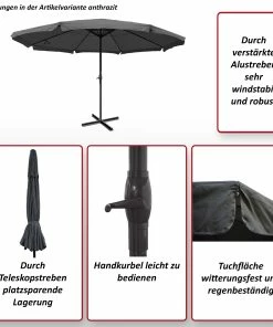 – Im Vergleich zum Schirm Meran hochwertigere Höhenverstellung mit Zahnrad und besserer Kurbel anstatt Seilzug