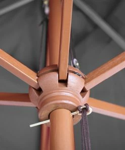 Der Schirm muss sich leicht entfalten lassen. KEINE Gewalt oder Kraft anwenden. Es besteht die Gefahr, dass die Holzstreben sich verkeilt haben. In diesem Fall bitte vor dem Öffnen unter den Schirm greifen und die Holzstreben wieder korrekt anordnen. Im Anschluss lässt sich der Schirm leicht entfalten.