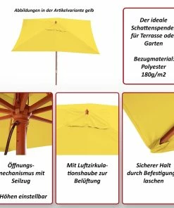 – Dieser Holz-Schirm ist ein praktisches Schmuckstück für Ihren Garten, Balkon oder Ihre Terrasse. Durch den Holzmast und das Holzgestell ist der Sonnenschirm relativ leicht und kann problemlos versetzt werden.