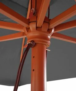 Es besteht die Gefahr, dass die Holzstreben sich verkeilt haben und so leicht brechen. In diesem Fall bitte vor dem Öffnen unter den Schirm greifen und die Holzstreben wieder korrekt anordnen. Im Anschluss lässt sich der Schirm leicht entfalten.