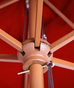 Es besteht – wie bei allen Schirmen – die Gefahr, dass die Holzstreben sich verkeilt haben. In diesem Fall bitte vor dem Öffnen unter den Schirm greifen und die Holzstreben wieder korrekt anordnen. Im Anschluss lässt sich der Schirm leicht entfalten.