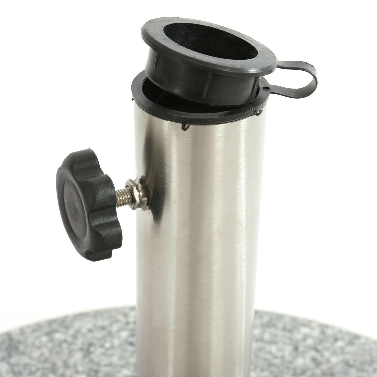 Auf den ersten Blick mag dieser massive Schirmständer wirken, wie jeder andere Schirmständer auch, doch auf den zweiten Blick wird klar, dass es sich hierbei nicht um ein 08/15-Produkt handelt. Die polierte, marmorierte Granitoberfläche sieht nicht nur einfach gut aus und ist kratzfest und pflegeleicht, nein, Sie tarnt auch die beeindruckende Funktionalität dieses Ständers, die sich eigentlich nicht verstecken muss.