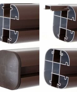 2 Alu-Pfosten, 2 Pfostenkappen, 2 Alu-Abschlussleisten, 8 WPC-Paneele