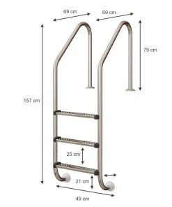 Die Leiter ist aus robustem Edelstahl. Dieser besteht in nasser Umgebung und lÀsst sich leicht reinigen.