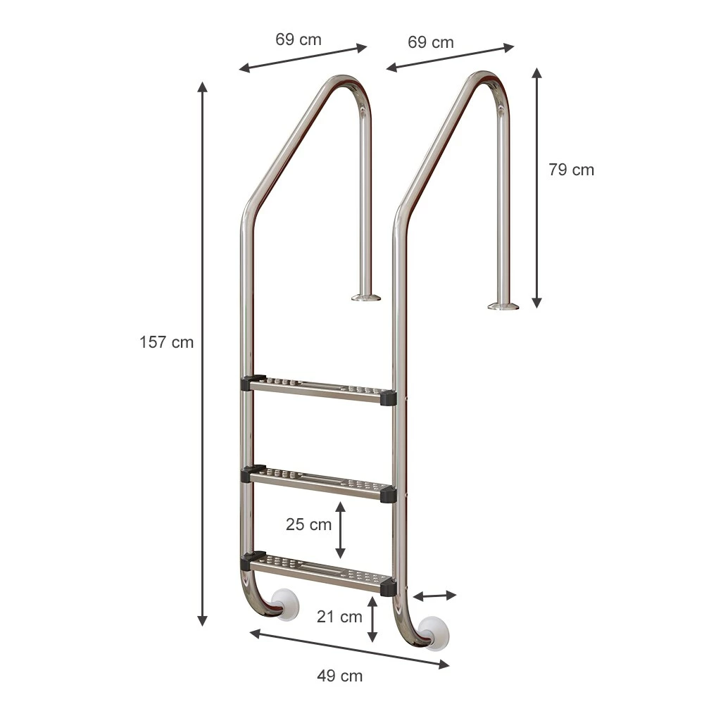 Die 3 breiten Leiterstufen mit Rutschhemmung bieten komfortablen Ein- und Ausstieg aus Schwimmbecken und Pool.