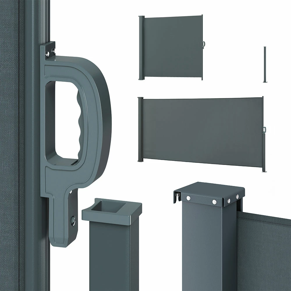 • Unsere strapazierfähigen Seitenmarkisen bestehen aus witterungs- und UV-beständigem Stahl und sind bestens für den Außeneinsatz geeignet.