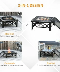 Bringen Sie Wärme und Atmosphäre auf Ihre Terrasse mit unserer mutifunktionen Feuerstelle! Sie kann nicht nur zum Heizen, sondern auch zum Grillen mit einem Grillgitter verwendet werden. Hergestellt aus langlebigem lackiertem Stahl, kann diese Schale hohen Temperaturen bis zu 500? standhalten. Ein Feuerschürhaken ist im Lieferumfang enthalten, um Sie und Ihre Familienmitglieder vor Verbrennungen zu schützen.
