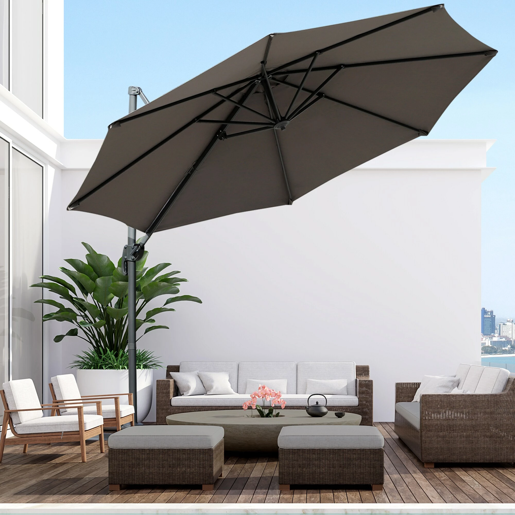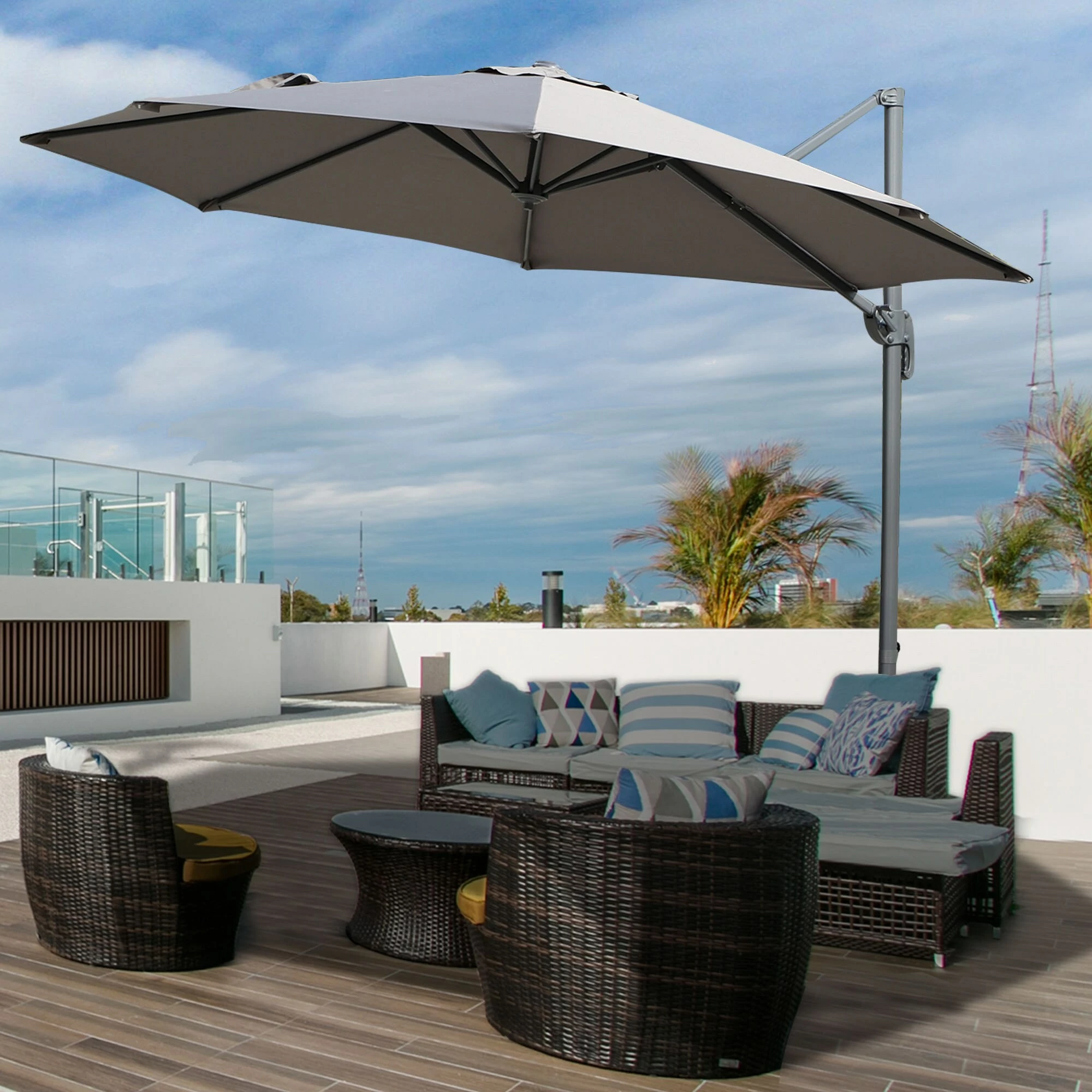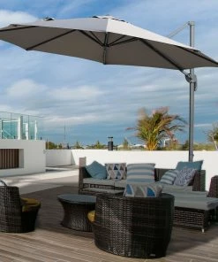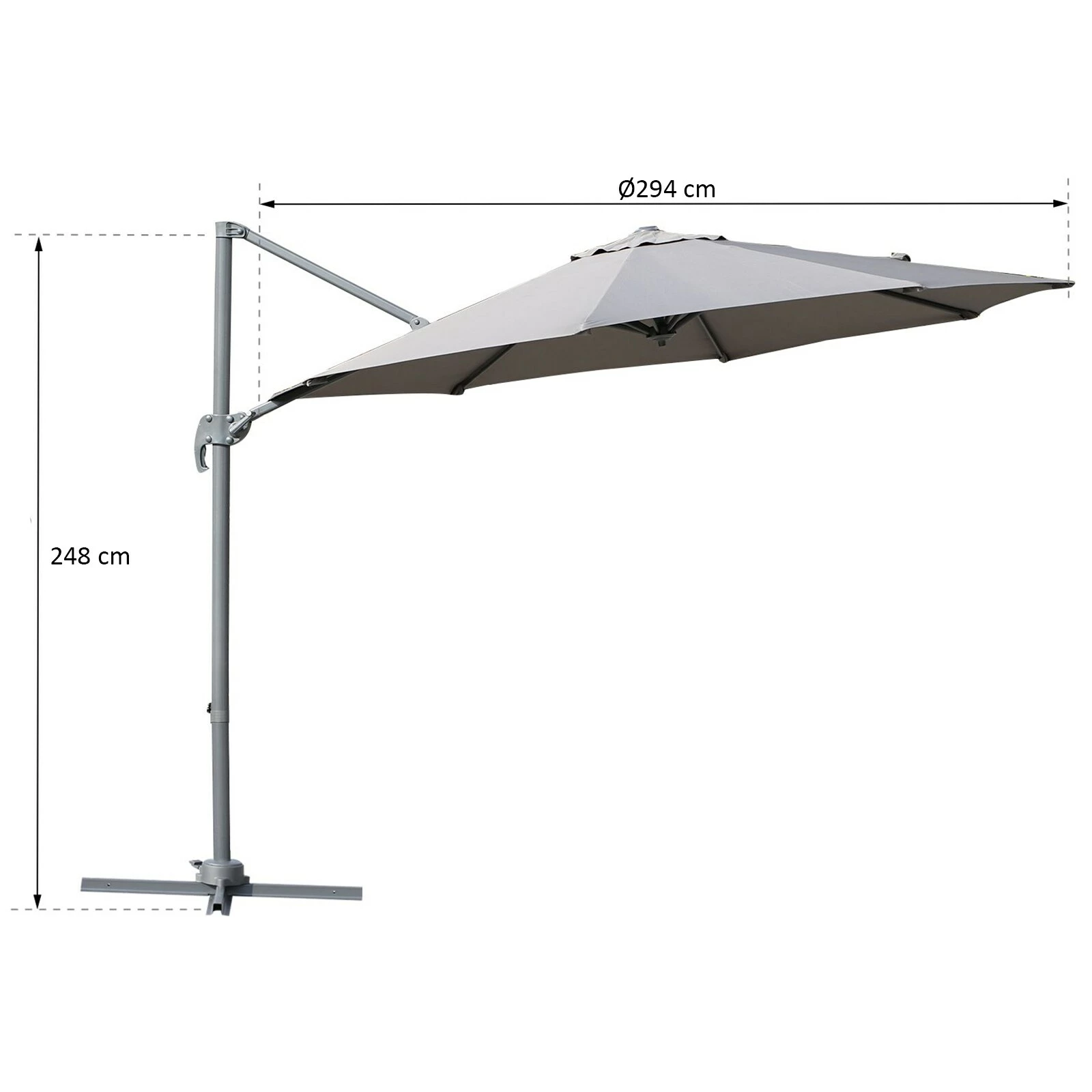 Unser hochwertiger und großer Ampelschirm ist der perfekte Schattenspender für sonnige Tage. Vielseitig lässt er sich auf Ihrer Terrasse, Ihrem Balkon oder bei einer Feier einsetzen. Die Schirmstange besteht aus Aluminium und die acht Streben aus robustem Stahl. Der Sonnenschirm an sich ist aus wasserabweisendem Polyester gefertigt und schützt Sie vor schädlicher UV-Strahlung. Der Neigungswinkel des Sonnenschirms lässt sich flexibel einstellen, damit Sie bei jedem Sonnenstand den besten Schutz genießen. Dank der Handkurbel lässt sich Ihr Ampelschirm einfach öffnen und schließen. Da kann der Sommer kommen!