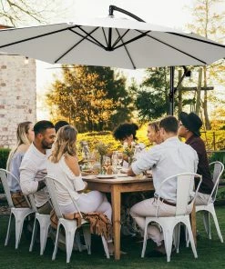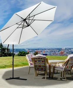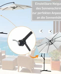 Unser hochwertiger und großer Ampelschirm ist der perfekte Schattenspender für sonnige Tage. Vielseitig lässt er sich auf Ihrer Terrasse, Ihrem Balkon oder bei einer Feier einsetzen. Die Schirmstange besteht aus robustem Stahl. Der Sonnenschirm an sich ist aus wasserabweisendem Polyester gefertigt. Der Neigungswinkel des Schirmbezugs lässt sich flexibel einstellen, damit Sie den besten Schutz vor starker Sonneneinstrahlung genießen. Dank der Handkurbel lässt sich Ihr Gartenschirm einfach öffnen und schließen. Da kann der Sommer kommen!