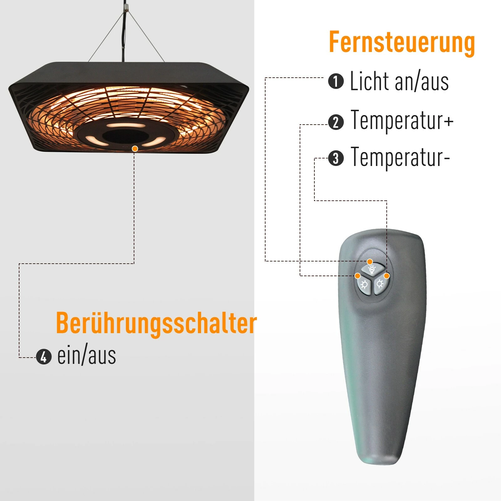 - Lieferumfang: 1 x Elektrischer Terrassenheizer, 1 x hÀngende Kette, 1 x Fernbedienung