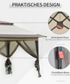 Dieses praktische Faltzelt ist eine gute Wahl für Sie und Ihre Feiern. Mit der Rolltasche können Sie dieses Faltzelt leicht transportieren. Die automatische Öffnungs- und Einfahrfunktion des Zentralverschlusses bietet großen Komfort bei der Verwendung und Aufbewahrung. Nehmen Sie dieses charmante Faltzelt und genießen Sie Ihre Freizeit!