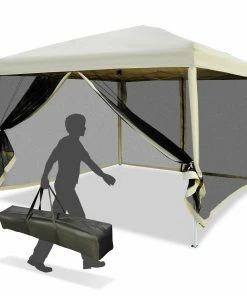 Unser stilvoller Faltpavillon bietet Ihnen durch das wasserabweisende Dach ausreichend Schutz vor leichtem Regen sowie direkter Sonneneinstrahlung. Auf diese Weise eignet er sich ideal für Ihren Garten als Platz für anregende Unterhaltungen, gemeinsames Beisammensein oder auch als Ort der Erholung. Er verfügt über ein starkes Stahlgestell und 4 abnehmbare Seitenwände aus Moskitonetz, wodurch Sie vor störenden Insekten geschützt werden. Mithilfe der dazugehörigen Heringe und Seile können Sie das Faltzelt sicher im Boden verankern. Für den einfachen Transport wird eine praktische Tragetasche mitgeliefert.