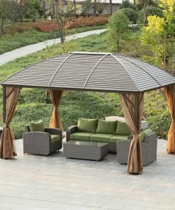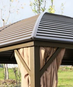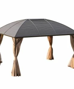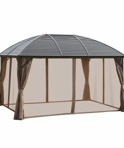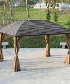 Dieser Pavillon bietet eine beeindruckende Kombination von Eleganz und Funktionalität. Das kunstvoll gewölbte Dach bietet langlebigen und zuverlässigen Schutz bei jedem Wetter. Je nach Bedarf haben Sie die Wahl zwischen Moskitonetz und wasserabweisenden Seitenteilen, wodurch sie immer die perfekte Balance zwischen Innen und Außen kreieren können. Das Gestell aus pulverbeschichtetem Aluminium sorgt zusammen mit den Erdnägeln für optimale Standsicherheit. Dank der Deckenhaken können Sie Beleuchtung, Heizstrahler oder Deko aufhängen, um eine angenehme Umgebung und romantische Stimmung für jeden Anlass zu schaffen. Mit diesem Luxus-Pavillon gelingt die nächste Party, Hochzeit oder sonstige Zusammenkunft garantiert!