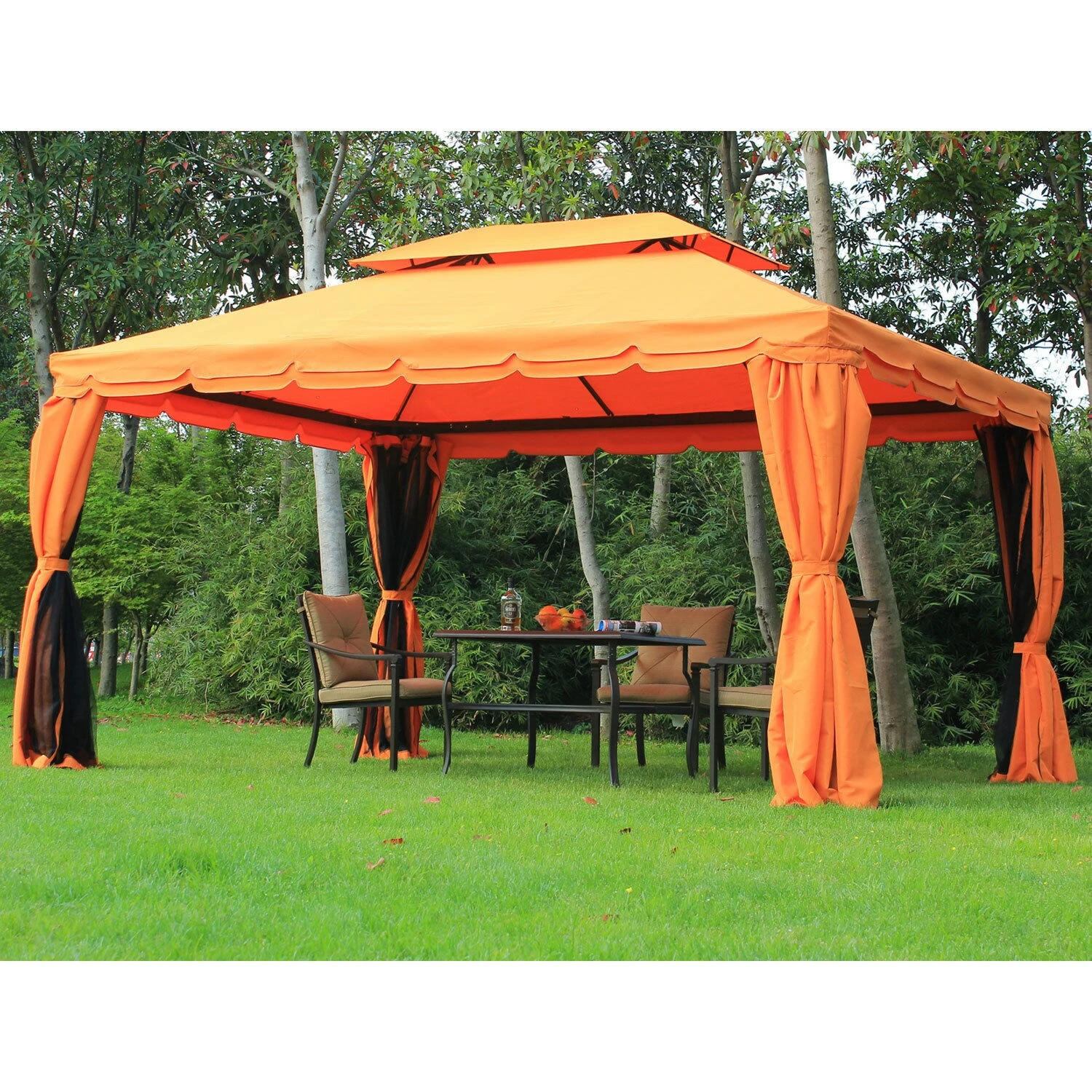 - Lieferumfang: 1 x Pavillon mit Doppeldach, 8 x Wasserabfluss, 8 x Heringe, Montageanleitung, inkl. aller benötigten Schrauben und passendem Werkzeug