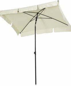 Dieser rechteckige Sonnenschirm eignet sich ideal für Balkon, Garten, Terrasse oder Strand und dient überall als Blickfang! Der wasserabweisende Schirm ist aus 160g/m2 starkem Polyester gefertigt und schützt Sie vor starker UV-Strahlung (UV 30+). Schirmstange und Verstrebungen sind aus pulverbeschichtetem Aluminium gefertigt und verleihen Ihrem Schirm Standfestigkeit. Ähnlich einer Sonnenblume können Sie Ihren Balkonschirm dem aktuellen Sonnenstand anpassen. Dank des Knickelements und des Drehfeststellers sitzen Sie immer im Schatten. So genießen Sie den Sommer in vollen Zügen.