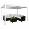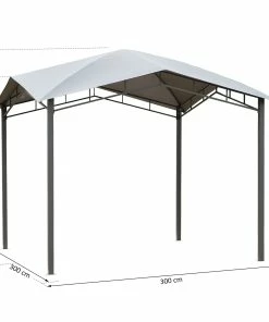Dieser schicke Pavillon verwandelt Ihren Außenbereich mit seinem eleganten und durchdachten Design in einen praktischen und stylischen Treffpunkt. Das wasserabweisende Dach schützt Sie vor UV und starker Sonneneinstrahlung und Regen. Der pulverbeschichtete Stahlrahmen und das Dach aus beschichtetem Polyester werden Ihnen über Jahre gute Dienste leisten. Planen Sie jetzt schon Ihre nächste Gartenparty mit Ihrem neuen Pavillon und genießen Sie die warme Jahreszeit in vollen Zügen!