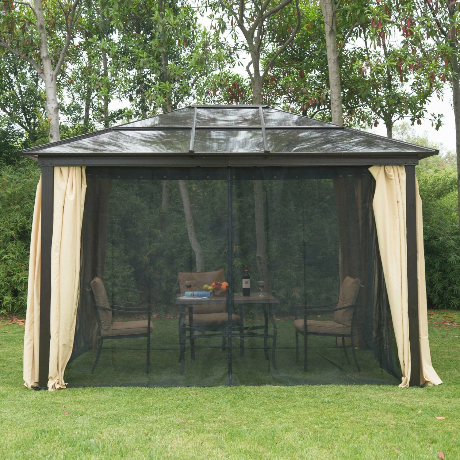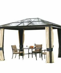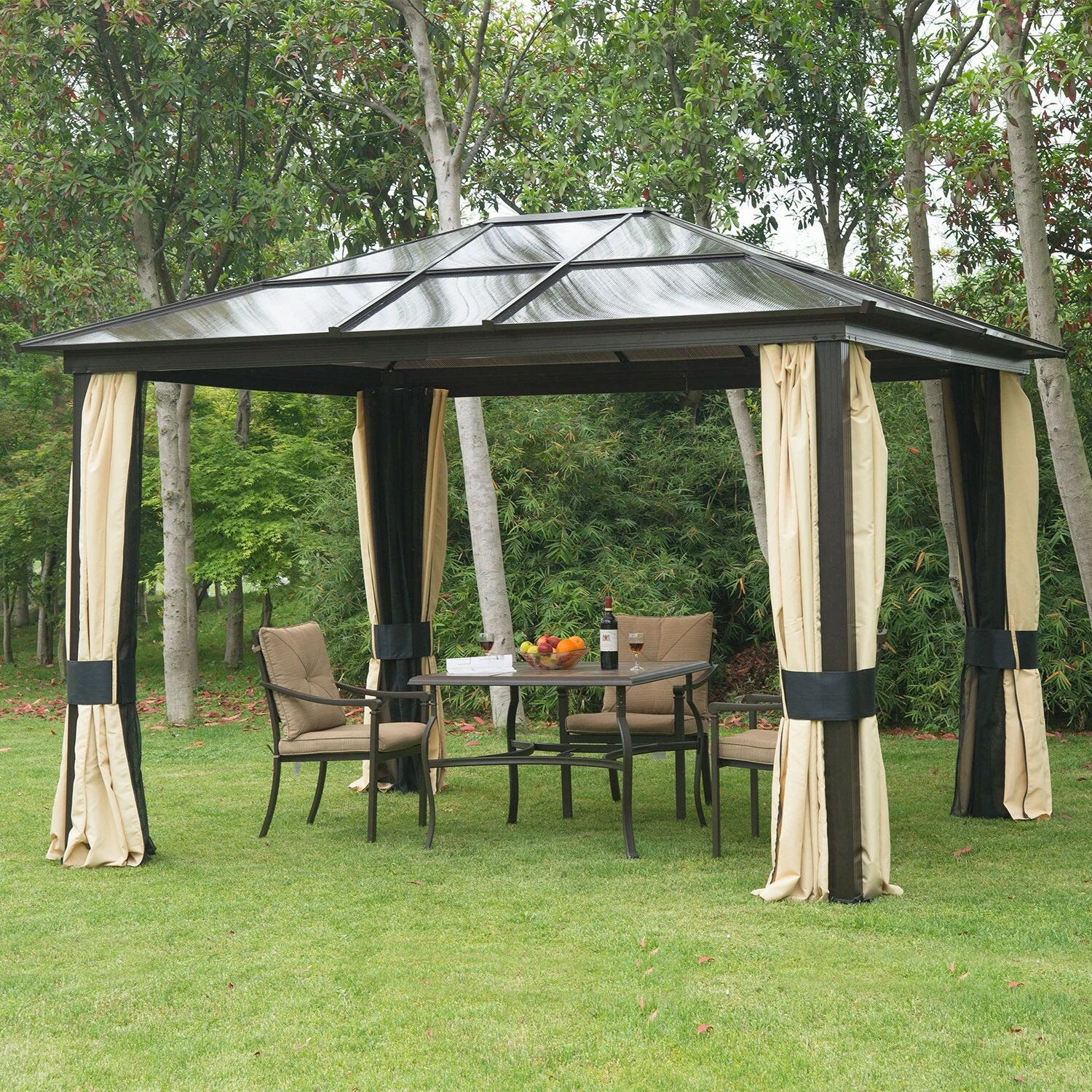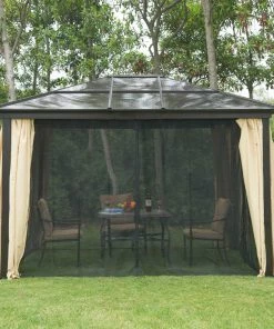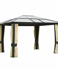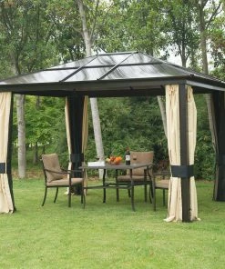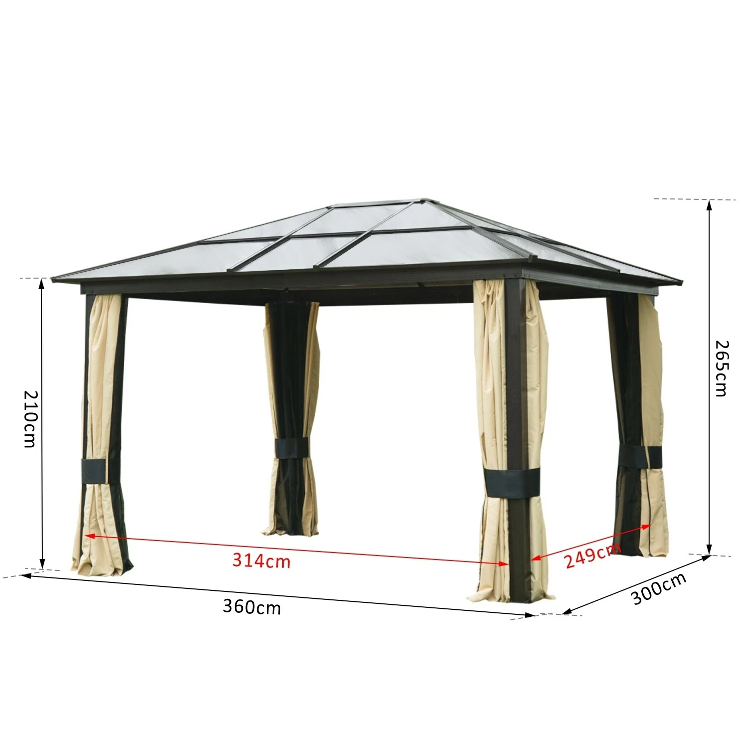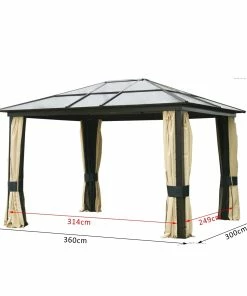 Unter diesem luxuriösen Pavillon fühlt man sich bei jedem Anlass im Grünen wohl! Ein besonderes Highlight bietet das lichtdurchlässige Dach aus Polycarbonat, das Ihnen einen lichtdurchfluteten und zudem geschützten Raum vor Wind, Regen und Insekten im Garten ermöglicht. Durch die Verwendung von stabilen und witterungsbeständigen Materialien verspricht dieser Pavillon aus Alu Langlebigkeit und hohe Funktionalität. Daher eignet er sich hervorragend für Feiern, festliche Veranstaltungen oder für entspannte Stunden im Außenbereich. Mit diesem eleganten Gartenpavillon verschaffen Sie sich nicht nur ein stilvolles Ambiente in Ihrem Garten, sondern auch einen idealen Schattenspender.