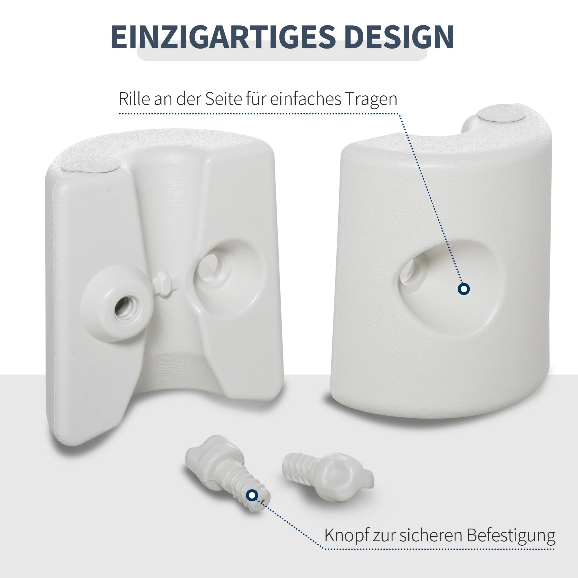 - Beschwerbar: Für sicheren Stand lassen sich Ihre Standfüße mit bis zu 19g Sand oder Wasser befüllen.