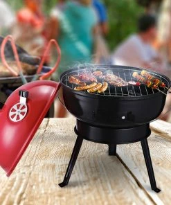 Mit diesem Grill können Sie bei Ihren Outdoor-Abenteuern köstliche BBQ zubereiten. Im Inneren befindet sich ein verchromter Grillrost mit einem Durchmesser von 34,6 cm. Er ist mit drei Belüftungsöffnungen am Deckel ausgestattet, die es Ihnen ermöglichen, die Flammenintensität bei geschlossenem Deckel zu regulieren, sowie mit einem Schutzgriff, damit Sie sich nicht verbrühen.