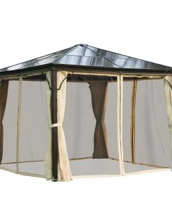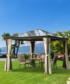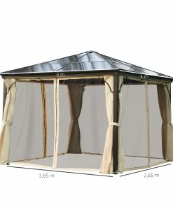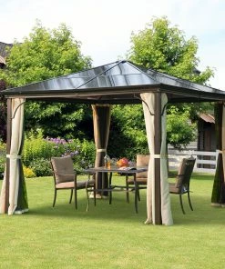 Unter diesem luxuriösen Pavillon fühlt man sich bei jedem Anlass im Grünen wohl! Ein besonderes Highlight bietet das lichtdurchlässige Dach aus Polycarbonat, das Ihnen einen lichtdurchfluteten und zudem geschützten Raum vor Wind, Regen und Insekten im Garten ermöglicht. Durch die Verwendung von stabilen und witterungsbeständigen Materialien verspricht dieser Pavillon aus Alu Langlebigkeit und hohe Funktionalität. Daher eignet er sich hervorragend für Feiern, festliche Veranstaltungen oder für entspannte Stunden im Außenbereich. Mit diesem eleganten Gartenpavillon verschaffen Sie sich nicht nur ein stilvolles Ambiente in Ihrem Garten, sondern auch einen idealen Schattenspender.