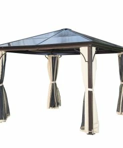 Unter diesem luxuriösen Pavillon fühlt man sich bei jedem Anlass im Grünen wohl! Ein besonderes Highlight bietet das lichtdurchlässige Dach aus Polycarbonat, das Ihnen einen lichtdurchfluteten und zudem geschützten Raum vor Wind, Regen und Insekten im Garten ermöglicht. Durch die Verwendung von stabilen und witterungsbeständigen Materialien verspricht dieser Pavillon aus Alu Langlebigkeit und hohe Funktionalität. Daher eignet er sich hervorragend für Feiern, festliche Veranstaltungen oder für entspannte Stunden im Außenbereich. Mit diesem eleganten Gartenpavillon verschaffen Sie sich nicht nur ein stilvolles Ambiente in Ihrem Garten, sondern auch einen idealen Schattenspender.