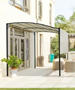 Dieser stilvolle Pavillon verwandelt Ihren Garten mit seiner stilvollen Gestaltung und seinem durchdachten Design in einen raffinierten und funktionalen Mittelpunkt. Das Dach bietet perfekten Schutz und schützt Sie vor den schädlichen UV-Strahlen. Das ausziehbare Seitendach bietet Vielseitigkeit, da Sie sich bei Bedarf hochklappen oder zurückziehen können. Die solide Stahlkonstruktion und das wetterfeste Polyestergewebe sorgen dafür, dass Sie und Ihre Gäste diesen gemütlichen Raum über viele Jahre genießen können. Sie und Ihre Gäste können sich unter dem kühlen, schattigen Dach entspannen. Das Leben soll draußen genossen werden.