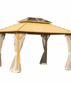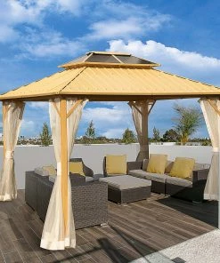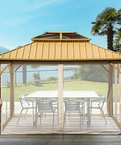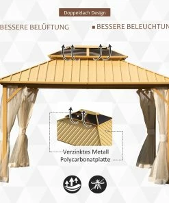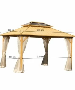 Dieser zweistufige Pavillon ist Ihre beste Wahl für alle Aktivitäten im Freien, Familienfeiern und Versammlungen. Unser Pavillon mit Holzmaserung verschönert Ihren Garten, Ihre Terrasse oder andere Außenbereiche und fügt ein Element des Komforts und der Eleganz hinzu, dass Ihre Gäste sicher beeindrucken wird. Er umfasst einen Nylonvorhang, der eine perfekte Wahl ist, wenn Sie die Sommerhitze besiegen und die Zeit im Freien genießen möchten