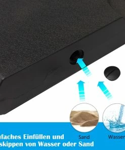 Sorgen Sie sich nicht mehr um die Sicherheit Ihrer Schirme. Unsere Halteplatten für Schirme sind aus robustem HDPE Kunststoff und mit einem wetter- und UV-resistentem Anstrich versehen. Jedes Teil lässt sich einfach mit 20kg Wasser oder 30 kg Sand befüllen und verhindert damit das Wegfliegen Ihrer Schirme bei starkem Wind. Ideal für alle Außenbereiche und die meisten Schirme.