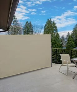 Die Seitenmarkise schützt Sie nicht nur vor Wind und Sonne, sondern verschafft Ihnen auch mehr Privatsphäre auf Balkon, Terrasse oder im Garten. Bringen Sie die Kassette einfach an einer Wand an und montieren Sie den Haltepfosten in der gewünschten Entfernung am Boden. Die Seitenmarkise ziehen Sie an ihrem handlichen Griff heraus und arretieren sie in der Halterung. Bei Nichtgebrauch sorgt eine flexible Feder dafür, dass sich der Sichtschutz schnell und ordentlich wieder vollständig in der Kassette einrollt. Das Kunststoffgewebe mit Polyamid-Beschichtung ist UV-beständig und wasserabweisend. Genießen Sie Ihre Terrasse in diesem Sommer noch einmal mehr – geschützt vor Sonne, Wind und neugierigen Blicken.
