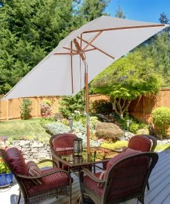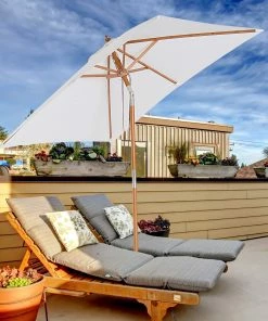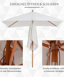 Unser rechteckige Sonnenschirm eignet sich ideal für Balkon, Garten, Terrasse oder Strand! Der aus 180 g/m² starkem Polyester gefertigte Schirm ist wasserabweisend und spendet angenehmen Schatten. Für die Schirmstange kommt der Naturwerkstoff Holz zum Einsatz. Die Verstrebungen werden aus exotischem Bambus gefertigt. Die stabile und standsichere Konstruktion überzeugt ebenfalls in puncto Bedienung. Mittels des intuitiven Seilzugsystems können Sie Ihren Gartenschirm ganz einfach öffnen und schließen. Damit Sie auch bei jedem Sonnenstand ein schattiges Plätzchen genießen, lässt sich der Neigungswinkel mittels Knickvorrichtung anpassen.