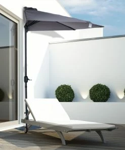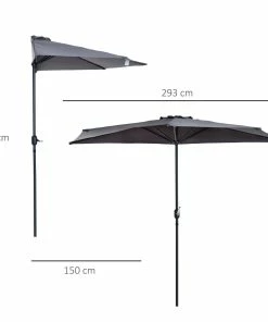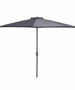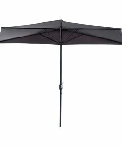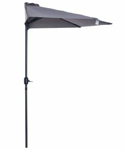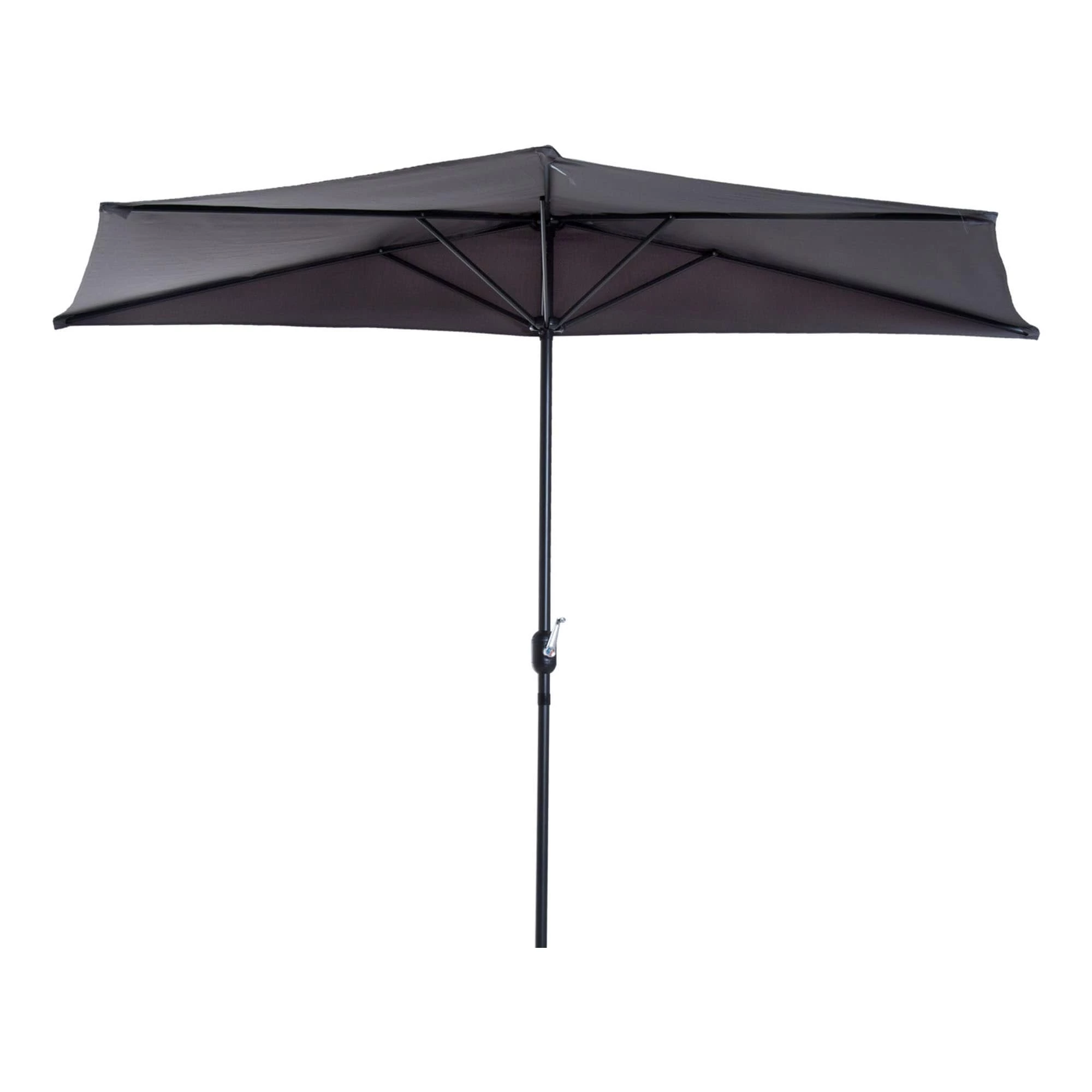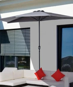 Für kleinere Terrassen und Balkons eignet sich unser graue Sonnenschirm ideal. Dank seiner halbrunden Form lässt er sich komfortabel an jede Wand stellen und nutzt den gegebenen Platz optimal aus. Der wasserabweisende Schirm ist aus 180 g/m2 starkem Polyester gefertigt und spendet Ihnen angenehmen Schatten. Schirmstange und Verstrebungen sind aus pulverbeschichtetem Aluminium gefertigt und verleihen Ihrem Schirm Standfestigkeit. Das wertige Material überzeugt durch sein geringes Gewicht bei hoher Belastbarkeit. Durch die integrierte Handkurbel haben Sie Ihren Schirm in Windeseile aufgestellt. Kompakt, durchdacht und simpel. Das ist unser Kurbelschirm.