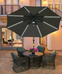 Dieser Sonnenschirm bietet ihnen viel Schatten an heißen Tagen. Für eine Beleuchtung bei Nacht sorgen integrierte LED-Leuchten. Eine Handkurbel erleichtert das Öffnen und Schließen des Schirms. Belüftungsöffnungen sorgen für eine gute Durchlüftung unter dem Schirm. Diese Sonnenschirm ist der ideale Begleiter an heißen und sonnigen Tagen.