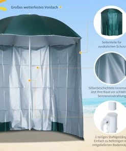 - UV-Schutz: Der Schirmbezug und die Seitenwand sind aus wasserabweisendem Polyester gefertigt und mit einer UV-beständigen Silberbeschichtung versehen.