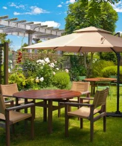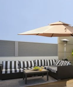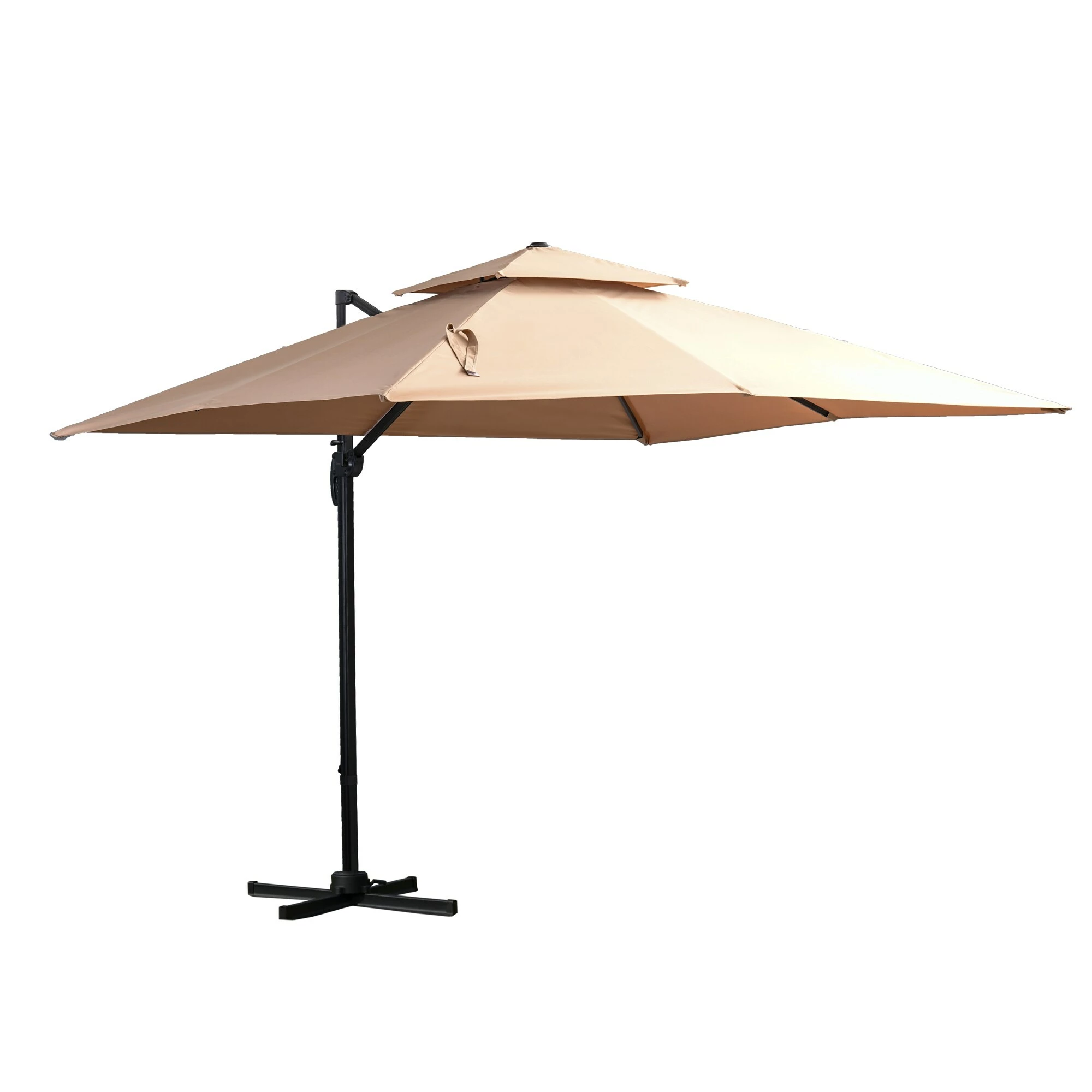 Benötigen Sie einen modernen und funktionalen Sonnenschirm in Ihrem Garten oder auf Ihrer Terrasse? Der Sonnenschirm zeichnet sich durch seinen verstellbaren Winkel, die 360°-Drehung und sein einfaches Öffnen aus. Sie können ihn auf einem Tisch oder einfach auf dem Sockel verwenden. Mit klassischem Stil, einer entspannenden Farbe und eleganten Linien wurde dieser Sonnenschirm entworfen, um Ihnen den Schatten zu spenden, den Sie brauchen, während Sie an einem sonnigen Tag den Außenbereich genießen. Das Doppel-Top-Design erhöht die Stabilität an windigen Tagen.