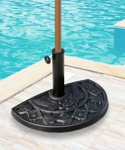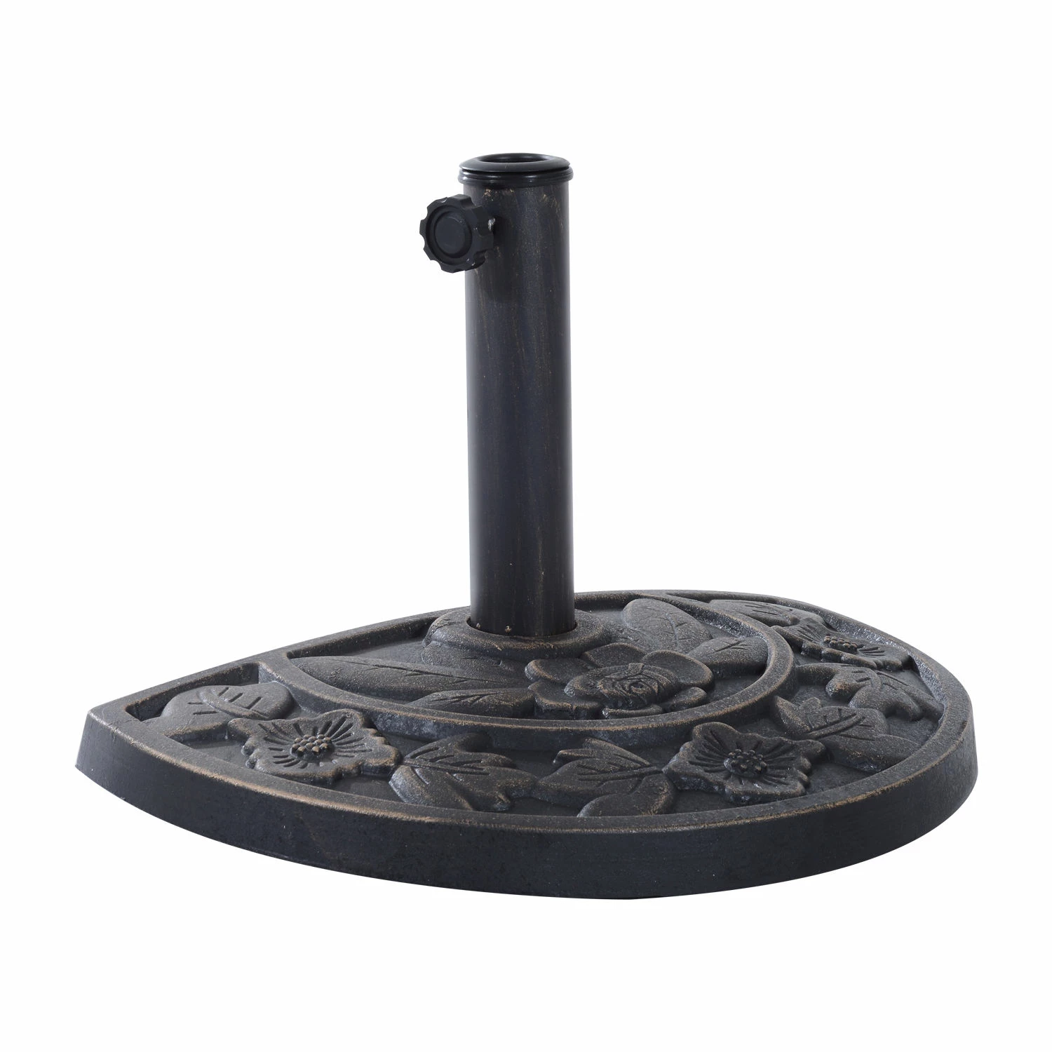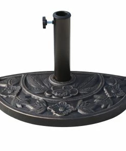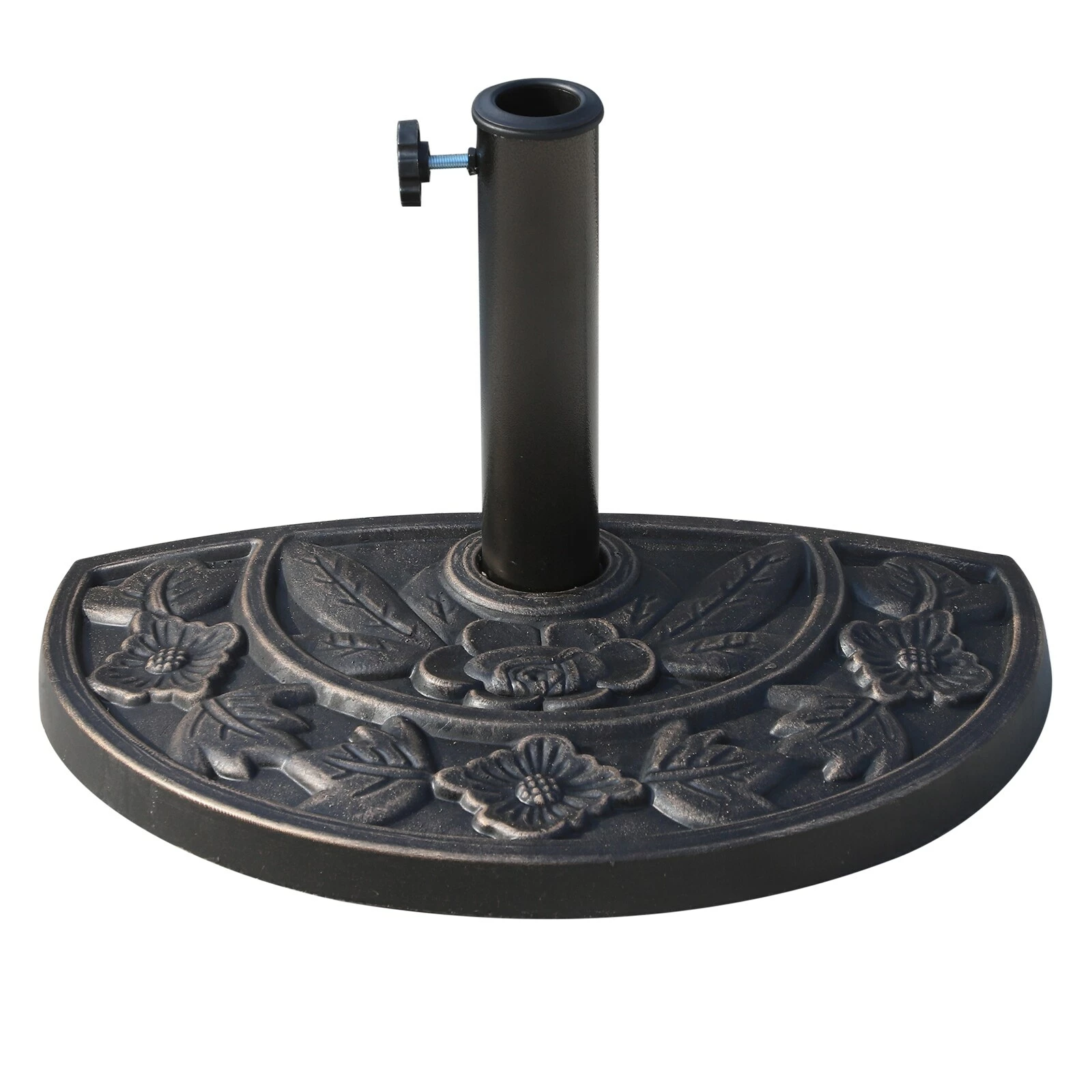 Dieser halbrunde Sonnenschirmständer in klassischer Optik ist perfekt für Sonnenschirme in halbrunder Form mit einem Stangendurchmesser von 3,8 cm-4,8 cm geeignet. Er ist aus robustem Harz in Bronzefarbe gefertigt und bietet dem Sonnenschirm einen sicheren Halt. Die Stange aus Edelstahl sorgt für hohe Stabilität des befestigten Sonnenschirms. Am Sonnenschirmständer befindet sich eine Feststellschraube zur Fixierung Ihres Sonnenschirms und bietet somit optimalen Halt.