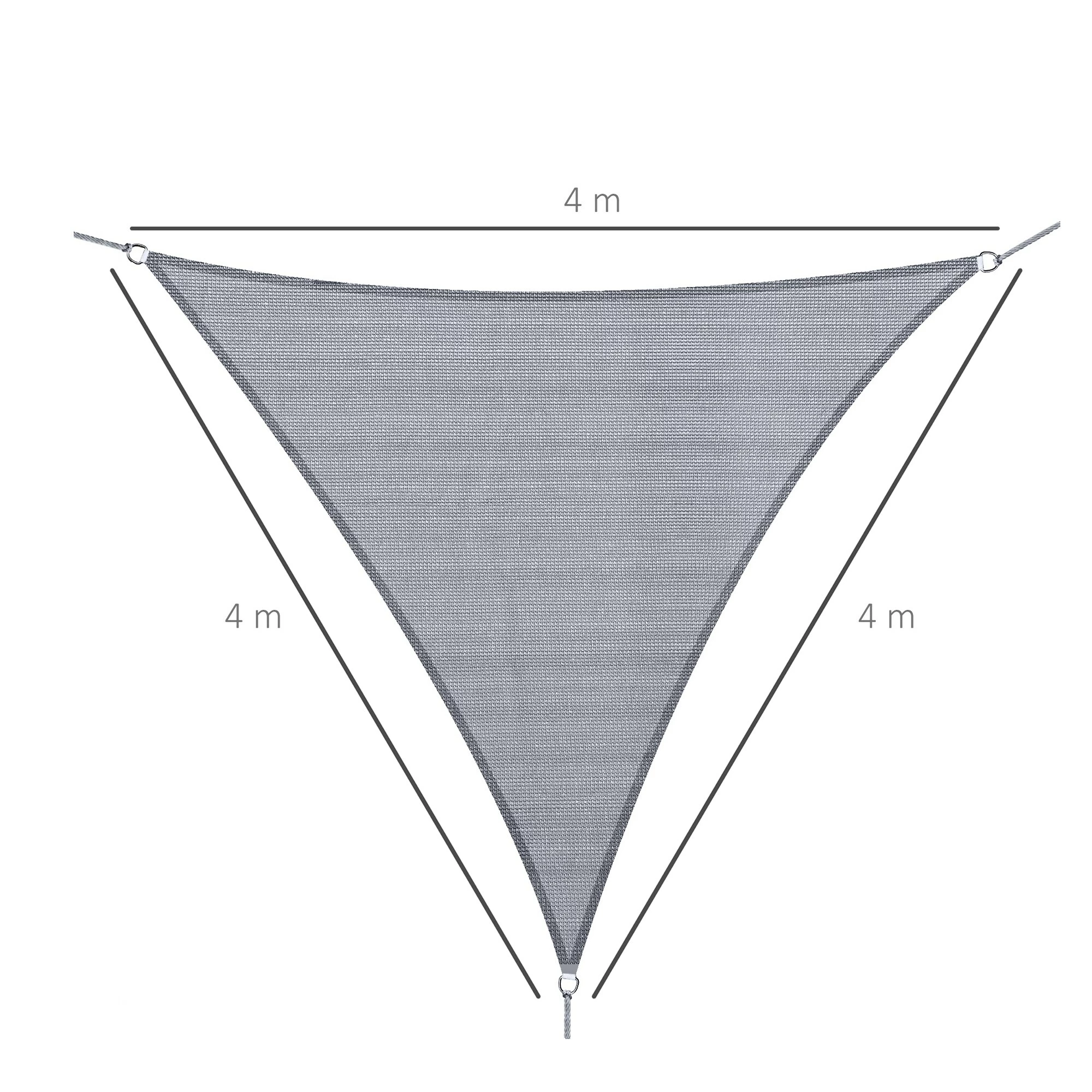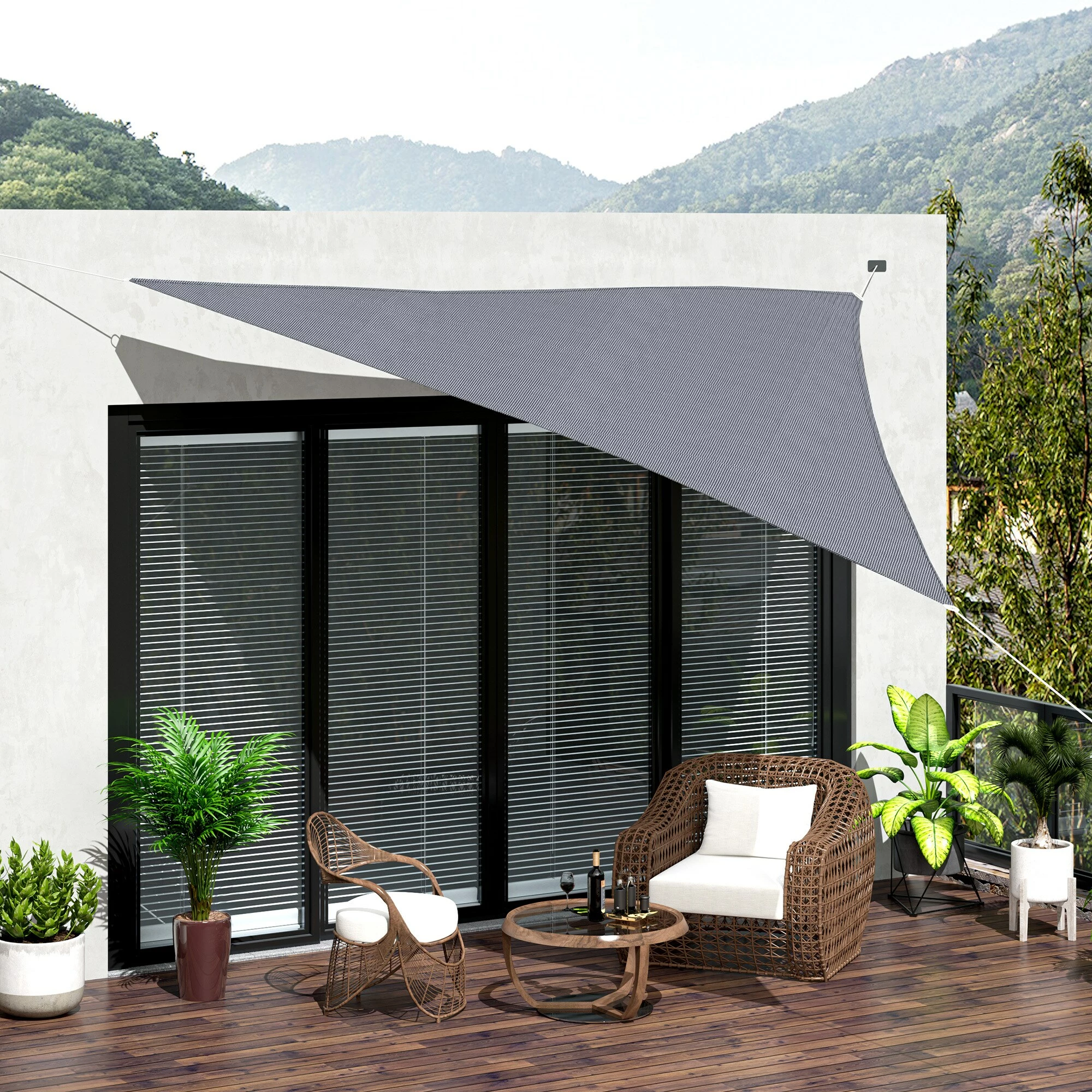 Unser Sonnensegel ist der perfekte Schattenspender für Ihr Zuhause. Die dreieckige Überdachung blockt bis zu 90% der gefährlichen UV-Strahlung erfolgreich ab. So lassen sich besonders Spielbereiche von Kindern sicher vor der Sonne schützen. Aber auch als Sonnendach für Ihre Terrasse oder Ihren Balkon eignet sich das adrette Segel. Als Material kommt 185g/m² schweres HDPE zum Einsatz. Das Kunstfasergeflecht ist wasserdurchlässig und atmungsaktiv. So wird ein Hitzestau unter dem Dach vermieden. An jeder Seite des Dreiecks befindet sich ein wertiger D-Ring aus 301 Edelstahl. Zusätzlich werden Befestigungsseile aus Nylon sowie eine praktische Tragetasche mitgeliefert. Damit haben Sie Ihr Sonnensegel auch unterwegs immer dabei.
