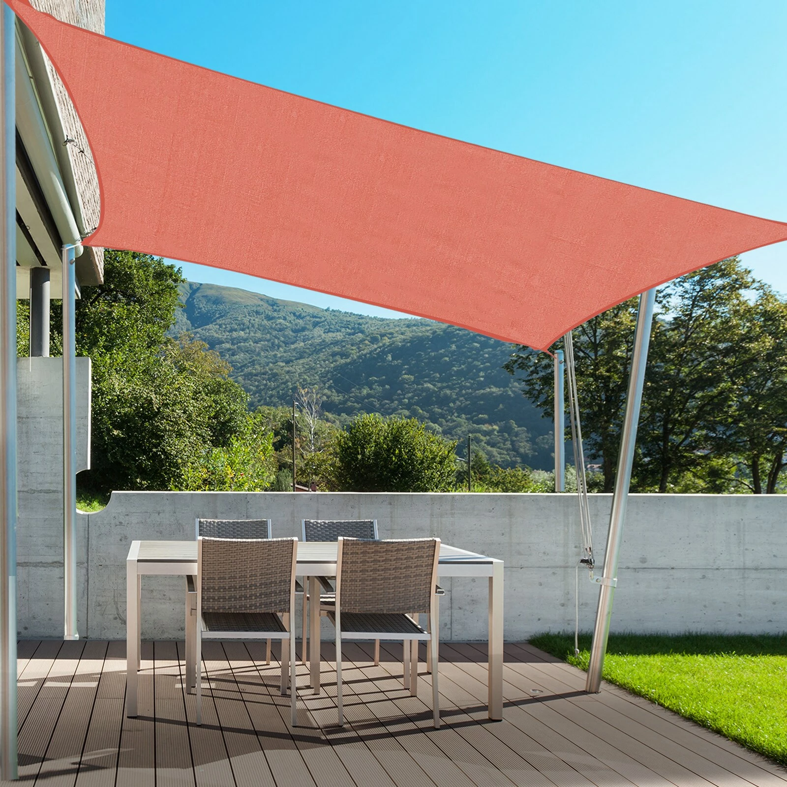 Unser Sonnensegel ist der perfekte Schattenspender für Ihr Zuhause. Die quadratische Überdachung blockt bis zu 90% der gefährlichen UV-Strahlung erfolgreich ab. So lassen sich besonders Spielbereiche von Kindern sicher vor der Sonne schützen. Aber auch als Sonnendach für Ihre Terrasse oder Ihren Balkon eignet sich das adrette Segel. Als Material kommt 185g/m² schweres HDPE zum Einsatz. Das Kunstfasergeflecht ist wasserdurchlässig und atmungsaktiv. So wird ein Hitzestau unter dem Dach vermieden. An jeder Seite des Rechtecks befindet sich ein wertiger D-Ring aus 301 Edelstahl. Zusätzlich werden Befestigungsseile aus Nylon sowie eine praktische Tragetasche mitgeliefert. Damit haben Sie Ihr Sonnensegel auch unterwegs immer dabei.