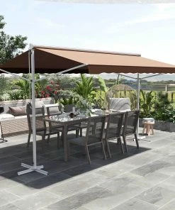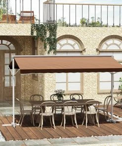 Unsere geräumige Standmarkise dient als die ideale Lösung für die kommenden sonnigen Tage. Ihr flexibler Schattenspender lässt sich einfach im Garten oder als Terrassenüberdachung aufstellen. Schutz vor intensiver UV-Strahlung und Regen genießen Sie dank des PU-beschichteten Polyesterdachs. Mit der Handkurbel können Sie Ihr Sonnendach ganz einfach aufspannen und einrollen. Für erstklassige Stabilität sorgt das hochwertige Gestell aus pulverbeschichtetem Metall. Das witterungsbeständige Material ist robust und langlebig und somit bestens für den Einsatz im Freien geeignet. Damit Sie zu jeder Uhrzeit Schatten genießen können, lässt sich der Neigungswinkel des Markisendachs dem jeweiligen Sonnenstand anpassen. So sind Sie perfekt auf die warmen Tage vorbereitet.