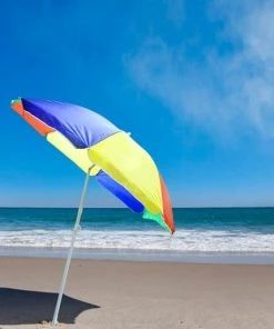 Unser bunter Sonnenschirm ist der perfekte Begleiter für Ihren Strandbesuch. Der praktische Sonnenschutz verfügt über einen wasserabweisenden Schirm aus Polyester. Stabil ist er dank des wertigen Metallgestells. Die Schirmstange ist überdies höhenverstellbar. Perfekt, um sonnige Stunden im Garten oder auf Ihrer Terrasse zu genießen.