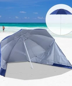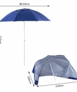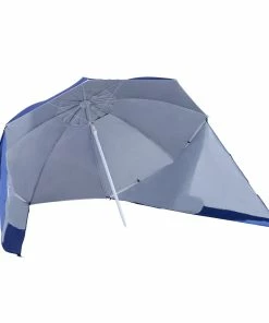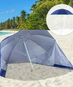 Für alle, die Meer wollen, gibt es unseren blauen 2 in 1 Sonnenschirm. Für den heimischen Gebrauch ist er der perfekte Schattenspender. Dabei macht er eine gute Figur im Garten, auf der Terrasse oder Ihrem Balkon. Für den Urlaub lässt sich Ihr Schirm kompakt in der mitgelieferten Transporttasche verstauen. Am Strand bringen Sie im Handumdrehen die praktischen Seitenteile an und verwandeln Ihren Schirm in eine Strandmuschel. Dank wasserabweisendem PVC und UV-beständiger Silberbeschichtung sind Sie und Ihre Familie dabei bestens geschützt. So kann der Sommer kommen.