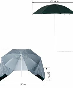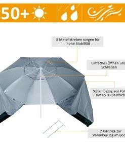- Lieferumfang: 1 x 2 in 1 Sonnenschirm, 2 x Seitenwände, 1 x Tragetasche, 2 x Heringe