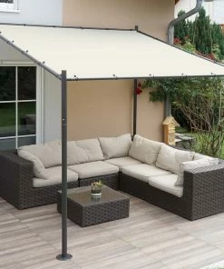 Was gibt es Schöneres als einen entspannten Platz an der Sonne? Mit dieser Terrassenüberdachung steht einem entspannten Sommertag in Ihrem Garten oder auf Ihrer Terrasse nichts mehr im Weg. Die Sonne strahlt allzu unbarmherzig herab oder es fängt an zu tröpfeln? Kein Problem, der Bezug aus hochwertigem Polyester schützt Sie nicht nur zuverlässig vor UV-Strahlung, sondern ist außerdem regenbeständig, sodass auch ein kurzer Schauer nicht zum Problem wird. Durch das Dach sind Sie bestens vor der sengenden Mittagssonne geschützt.
